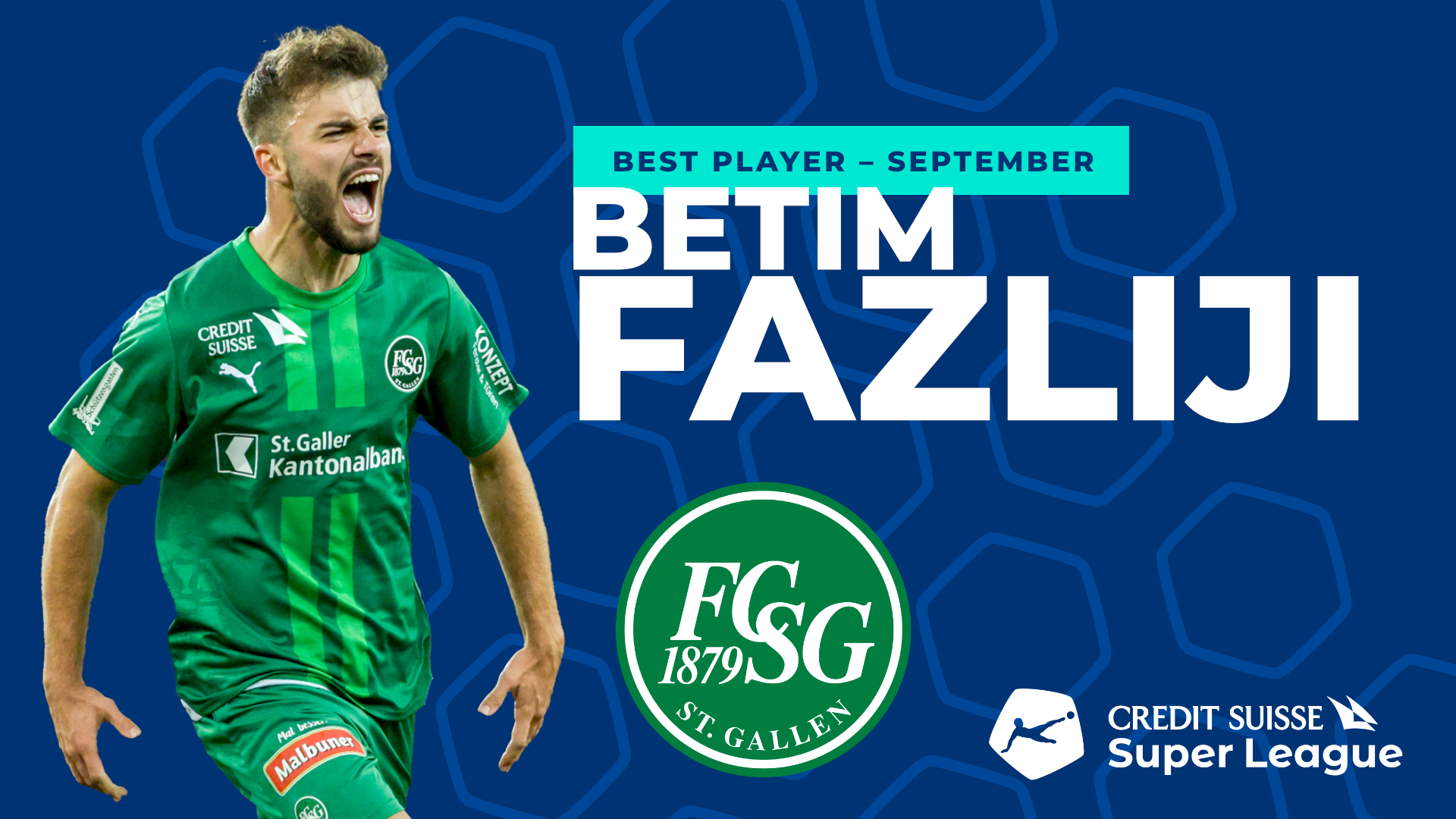 Le milieu de terrain de 1,86 m a foulé les pelouses suisses comme titulaire lors des 10 matches du FC St-Gall de la saison (et il était buteur lors du 1-1 chez les Grasshoppers)! Il est devenu incontournable dans la formation de Peter Zeidler. Ses excellentes performances du mois de septembre ont convaincu les fans de SFL de l'élire «Best Player» de Credit Suisse Super League du mois de septembre.