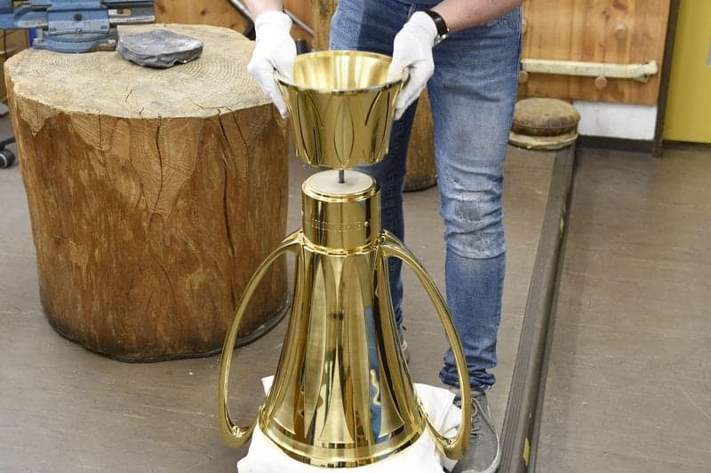 Der Pokal ist ein Meisterstück der Handwerkskunst - alle Verarbeitungstechniken des jahrhundertealten Handwerks kamen in rund 920 Arbeitsstunden zum Einsatz. Der Pokal ist 50 Zentimeter breit, 73 Zentimeter hoch und wiegt - ohne flüssigen Inhalt - 13 Kilogramm. Am 25. Mai 2016 hatte der FC Basel als Schweizer Meister 2015/16 die grosse Ehre, die neue Trophäe zum ersten Mal in die Höhe zu stemmen.