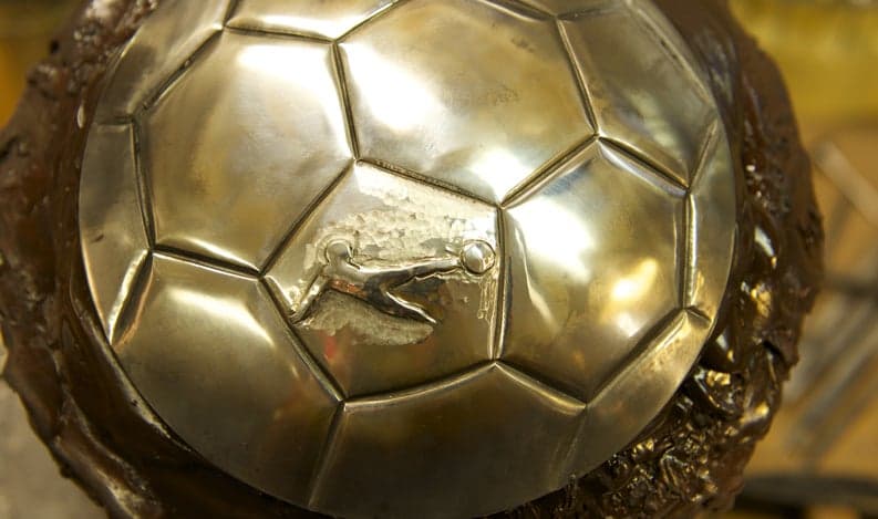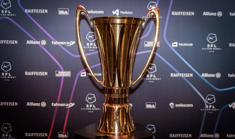 Seit 2016 gibt es für den Meister der Super League eine neue Trophäe, die sechste in der Geschichte der höchsten Schweizer Fussball-Liga. Das Kunstwerk aus dem Atelier der Firma Meister Silber aus Zürich besteht aus vergoldetem Sterlingsilber, ist 73 Zentimeter hoch und 13 Kilogramm schwer. Ohne Champagner...